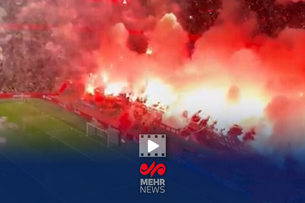 آتشبازی هواداران آژاکس روی سکوها که منجر به توقف بازی روز گذشته مقابل خرونیخن شد.