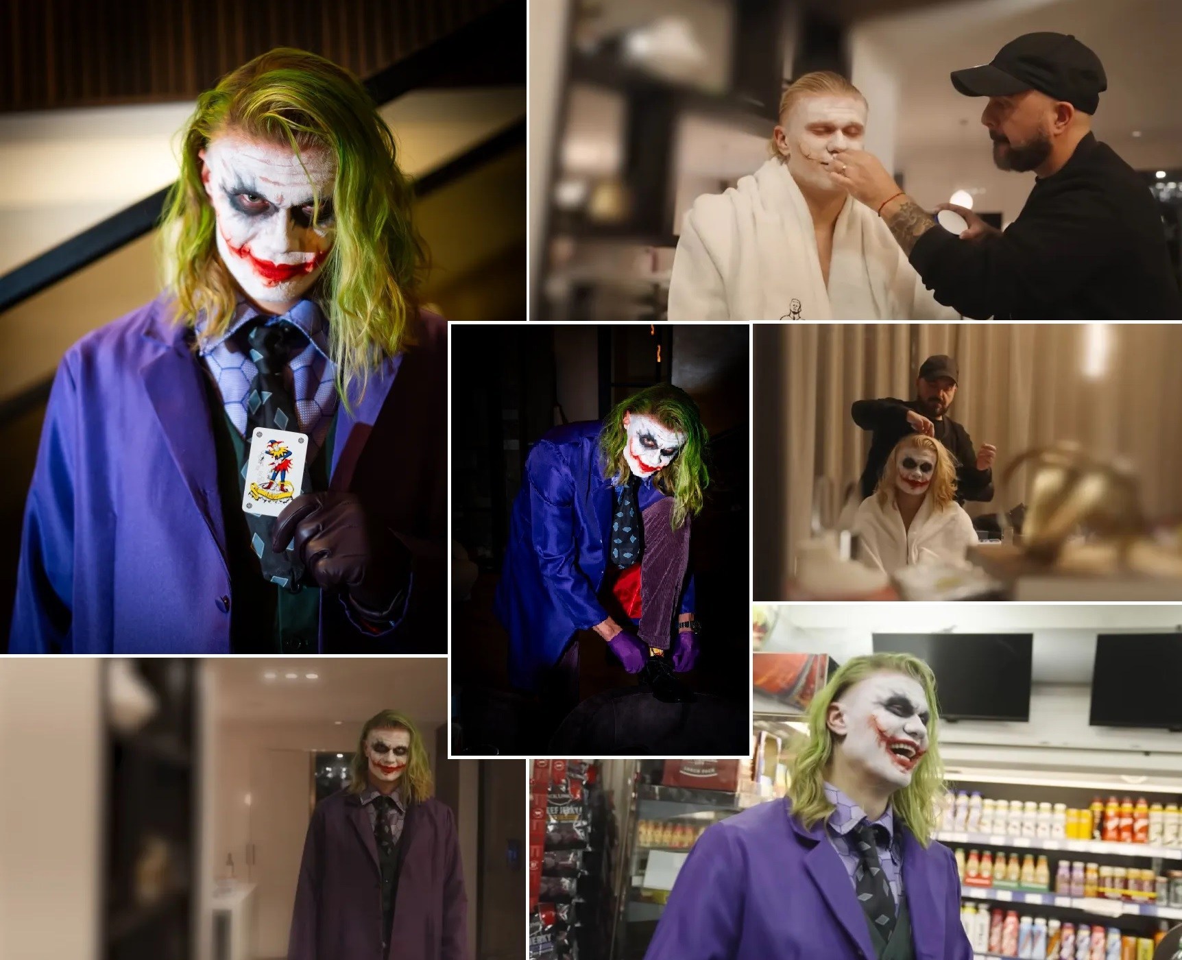 کلیپی منتشر شده از لحظه گریم هالند منتشر شده است که او پس از نگاه کردن به چهره خود در آینه میگوید: «اوه نه، واقعاً چندش شدهام! جوکر حالا فوتبال هم میتواند بازی کند.»