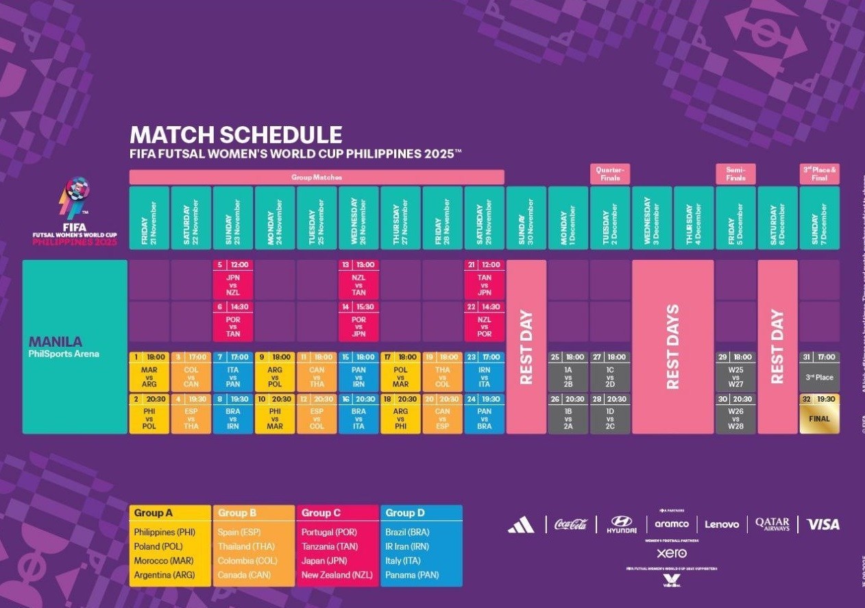 به گزارش خبرگزاری شوت 20 و به نقل از ‌سایت رسمی فدراسیون فوتبال، جام جهانی فوتسال بانوان 2025 – فیلیپین از 21 نوامبر تا 7 دسامبر (30 آبان تا 16 آذر) در قالب چهار گروه چهار تیمی به میزبانی فیلیپین در شهر مانیل برگزار می‌شود و ملی‌پوشان کشورمان در نخستین گام در تاریخ دوم آذرماه به مصاف برزیل می‌روند.