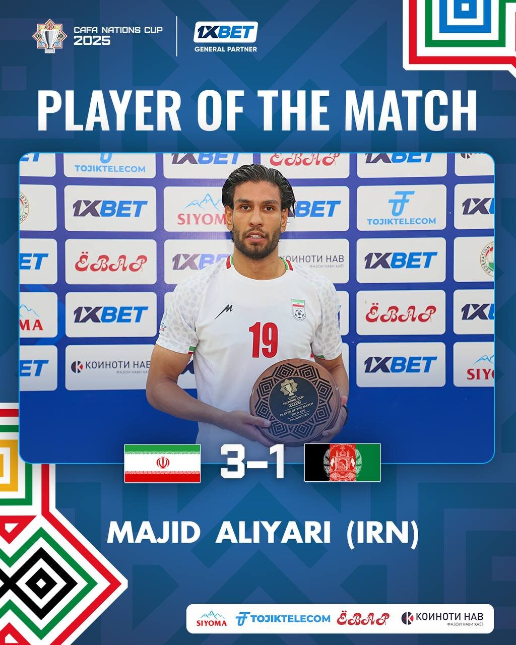 در پایان بازی علیاری جایزه بهترین بازیکن زمین را از مسئولان برگزاری مسابقات دریافت کرد.