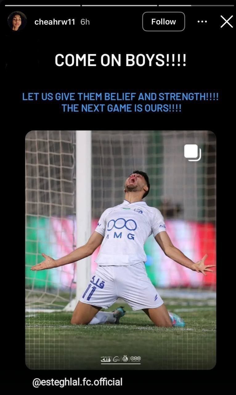 ویتست با لحنی جالب در استوری‌اش نوشت: ” یالا پسران! ” جالب بود که او در مدت کوتاه حضورش در استقلال درگیر فوتبال و رقابت‌های باشگاهی شده و جذاب‌ترین صحنه مسابقه و فریاد سحرخیزان را برای این استوری انتخاب کرده که نشان می‌دهد بازی را تا ثانیه پایانی دنبال کرده است.