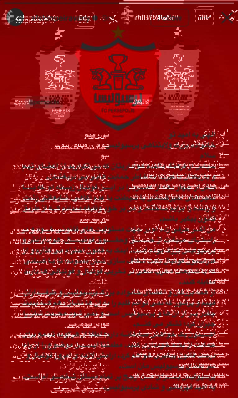او همچنین نوشت: «اگر حرفی زدهام، در جهت مسئولیت قانونی خود و در راستای صیانت از حق و حقوق فوتبال و پرسپولیس بوده است. اینک به قانون احترام میگذارم و از فدراسیون فوتبال بابت شفاف سازی ممنونم.»