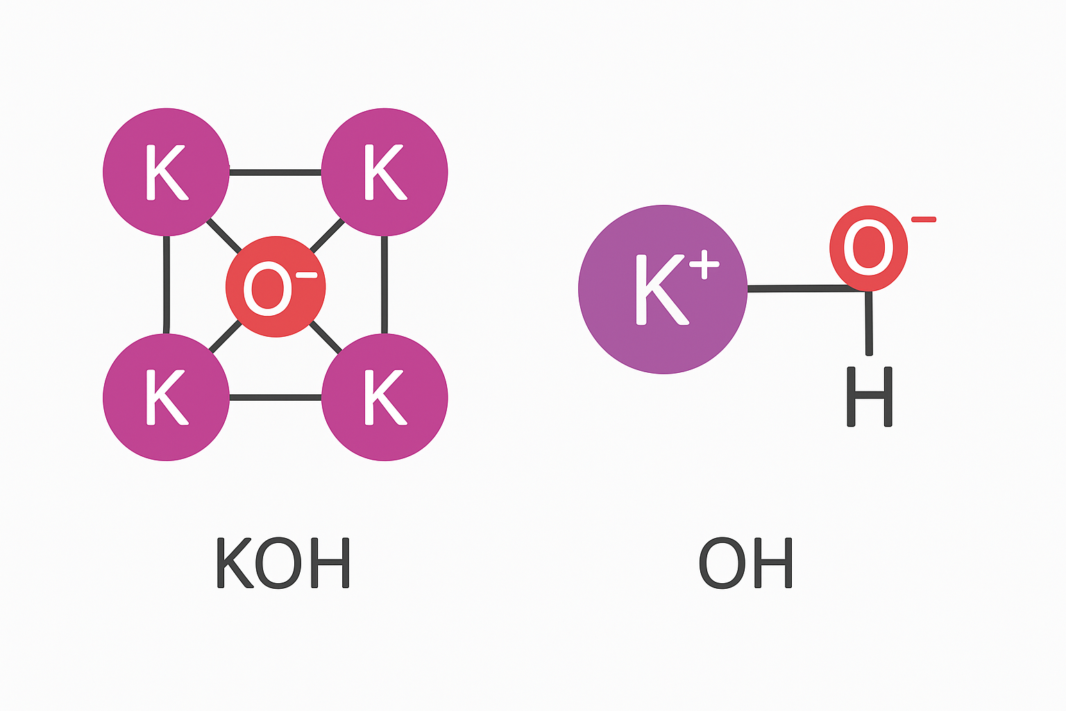هیدروکسید پتاسیم (KOH) یکی از بازهای قوی و پرکاربرد در صنعت صابون‌سازی است که نقش کلیدی در تولید صابون‌های مایع و نرم ایفا می‌کند. این ماده در واکنش صابونی شدن با تری‌گلیسیریدهای موجود در چربی‌ها و روغن‌ها وارد واکنش می‌شود و اسیدهای چرب را به نمک‌های پتاسیمی تبدیل می‌کند. تفاوت اساسی این نمک‌ها با نمک‌های سدیمی در ساختار بلوری و میزان انحلال‌پذیری آن‌هاست. نمک‌های پتاسیمی به راحتی در آب حل می‌شوند و محصولی با حالت مایع یا ژل‌مانند ایجاد می‌کنند، در حالی‌که نمک‌های سدیمی صابون سخت و جامد تولید می‌کنند.