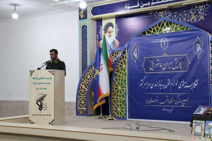 به گزارش خبرنگار مهر، سرهنگ عبدالکریم پولادیفر عصر سه شنبه در آئین پویش ایران عاشورایی و توزیع ۲ هزار بسته نوشت افزار بین دانش آموزان کم بضاعت در حسینیه سپاه شهرستان دیر با اعلام برگزاری این برنامه به نمایندگی از استان بوشهر در شهرستان دیر، اظهار داشت: همزمان با سراسر کشور شاهد پویش ایران عاشورایی و اهدای بستههای نوشتافزار به دانشآموزان کمبضاعت استان هستیم.